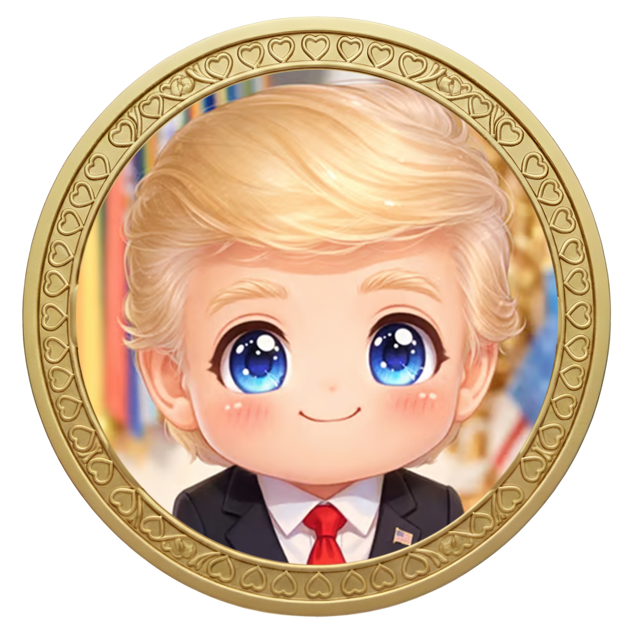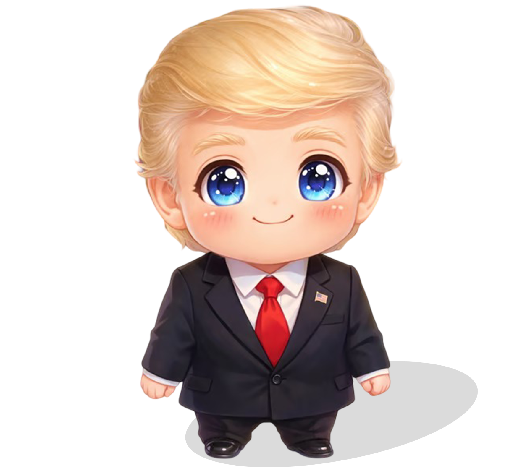 Deep within a world of floating golden towers and eternal red caps, Chibified Trump stands as the legendary master of the meme pump. Far beyond just a symbol of a movement, he represents a boundless energy that flows through the cotton-candy clouds of crypto. With his chibi-sized diamond tie and a tiny scepter forged from the very starlight that bathes the horizon, he ensures that the spirit of the Chibified Trump remains a constant force. He moves with a loopy, effortless grace, proving that true momentum isn’t just about speed—it’s about the winning behind every deal fired across the sky.